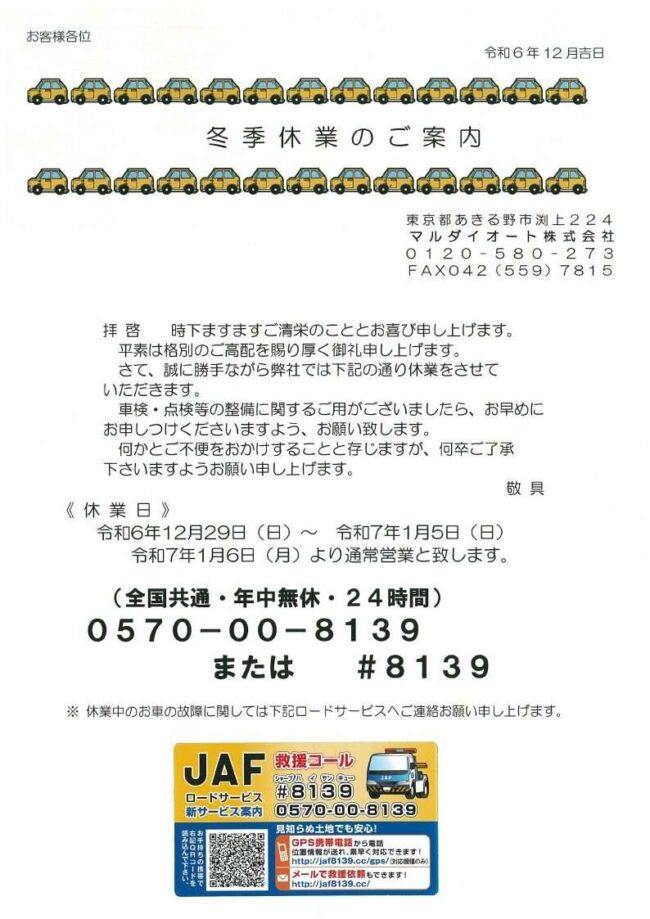 あきる野の車検板金・福祉車両レンタカー © マルダイオート