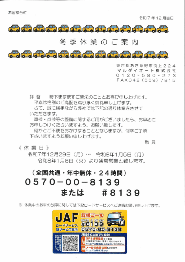 あきる野の車検板金・福祉車両レンタカー © マルダイオート