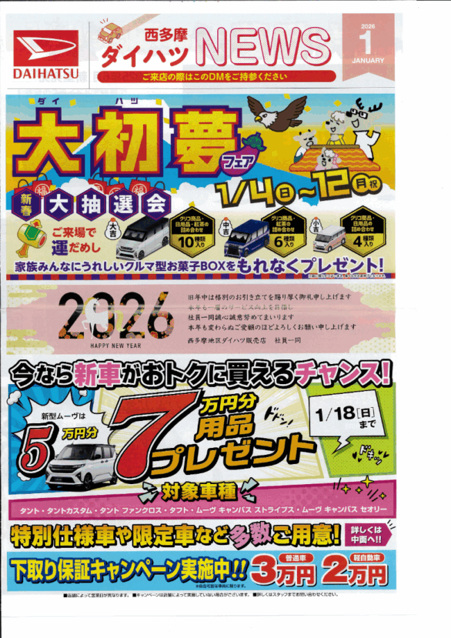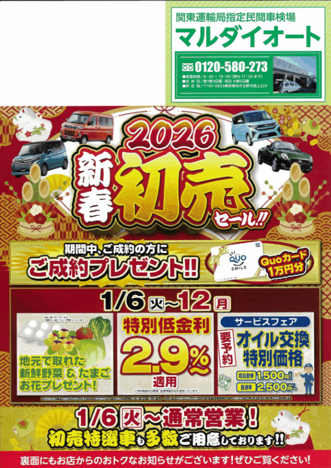 【2026新春初売りセール‼】1/6火~1/12日 ご成約プレゼントQUOカード1万円分