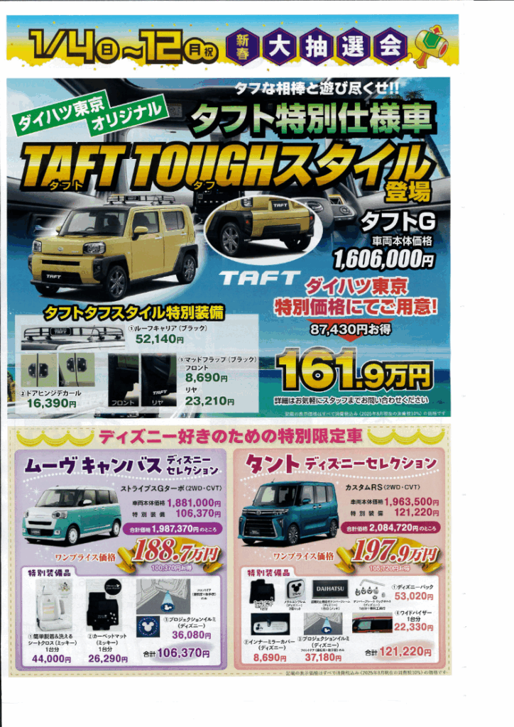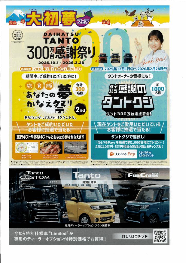 Post navigationPreviousPrevious post:2025~2026年冬季休業のご案内NextNext post:【2026新春初売りセール‼】1/6火~1/12日 ご成約プレゼントQUOカード1万円分